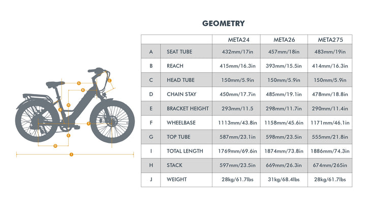 The City Model META24 1.0 E-Bike Specifications Battery: 48V 15Ah (Optional Second Battery 15Ah) Range: 100 Miles (48V 15Ah Battery+ Second Battery 15Ah) Motor: 48V 500W hub motor with max 55 N.m torque Frame Size: 17...