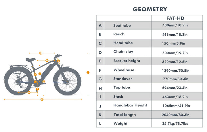 The 26" 1000W Fat Tire Model FAT-HD 1.0 Pro E-Bike Specifications